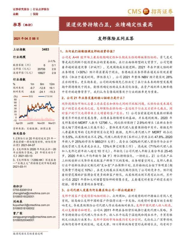 【海通证券】【20210408】保险行业:友邦保险五问五答-渠道优势持续凸显,业绩确定性最高-3页 行业研究
