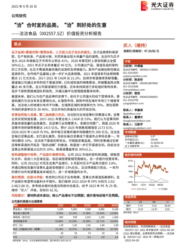 【光大证券】【20220920】20220920-光大证券-洽洽食品-002557.SZ-价值投资分析报告:“洽”合时宜的品类,“洽”到好处的生意-29页 行业研究