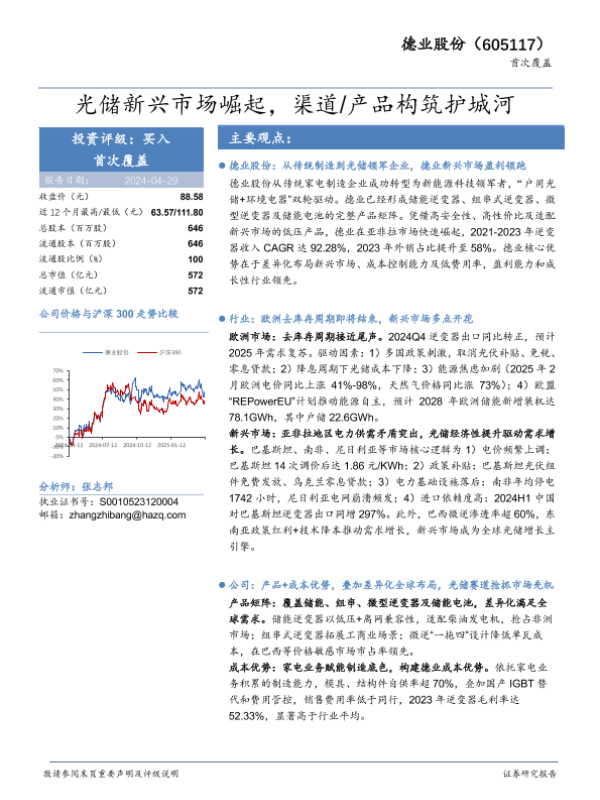 【华安证券】【20240429】德业股份(605117)光储新兴市场崛起,渠道/产品构筑护城河-31页 证券期货研究报告