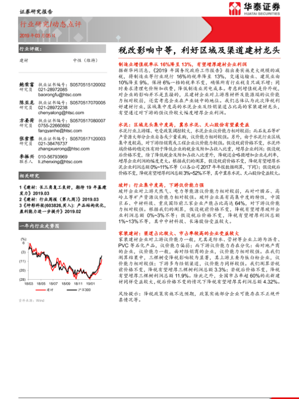 【华泰证券】【20190305】建材:税改影响中等,利好区域及渠道建材龙头-3页 行业研究