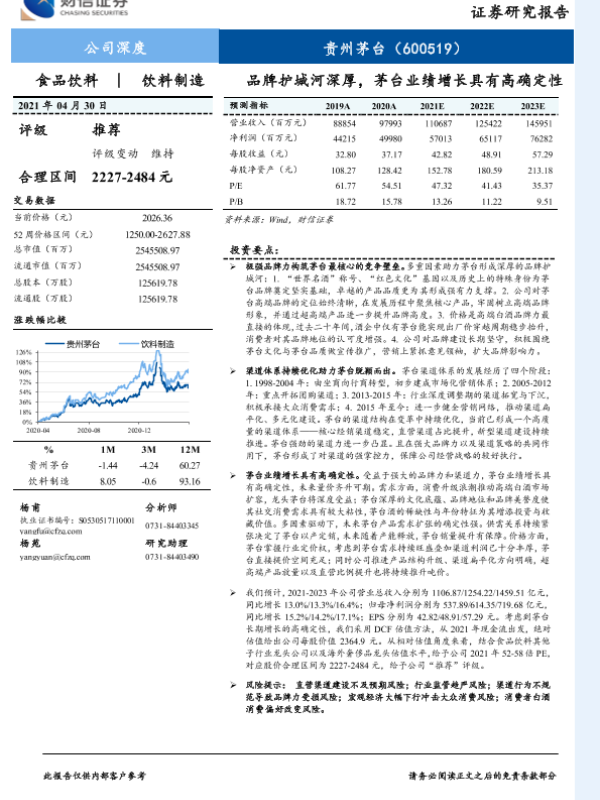 【财信证券】【20210430】2021.04.30-贵州茅台:品牌护城河深厚,茅台业绩增长具有高确定性-23页 行业研究