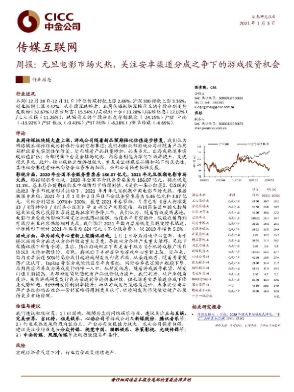 【中金公司】【20210103】传媒互联网周报:元旦电影市场火热,关注安卓渠道分成之争下的游戏投资机会-19页 行业研究