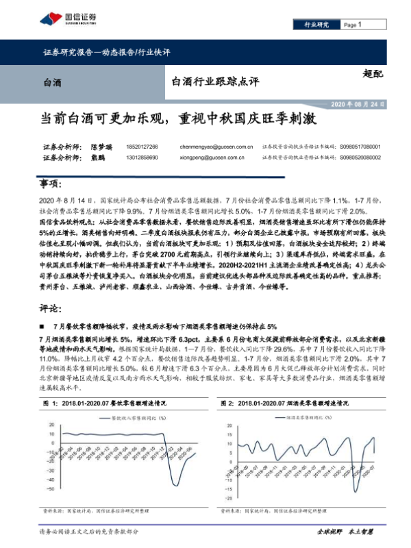 【国信证券】【20200824】20200824-国信证券-白酒行业跟踪点评:当前白酒可更加乐观,重视中秋国庆旺季刺激-6页 行业研究