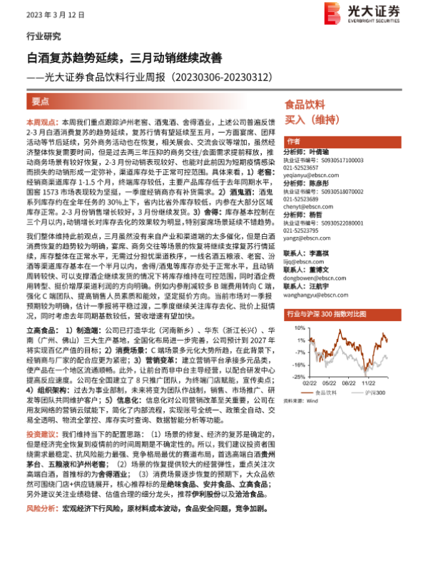 【光大证券】【20230312】20230312-光大证券-食品饮料行业周报:白酒复苏趋势延续,三月动销继续改善-10页 行业研究