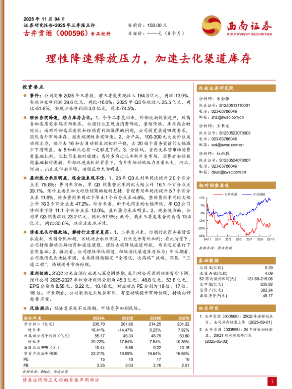 【西南证券】【202511】古井贡酒(000596)2025年三季报点评-7页 证券期货研究报告