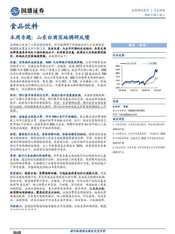 【国盛证券】【20200802】20200802-国盛证券-食品饮料本周专题:山东白酒实地调研反馈-13页 行业研究