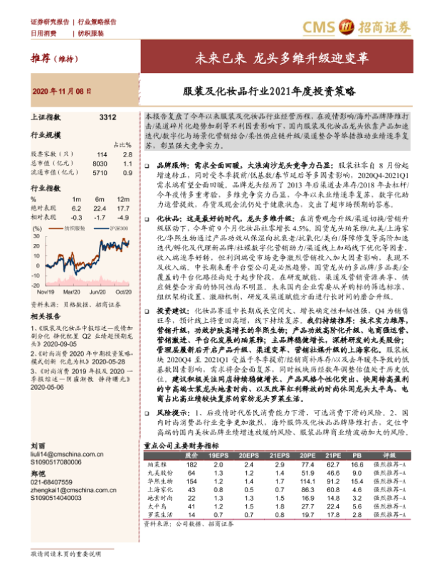 【海通证券】【20201108】服装及化妆品行业2021年度投资策略:未来已来 龙头多维升级迎变革-25页 行业研究