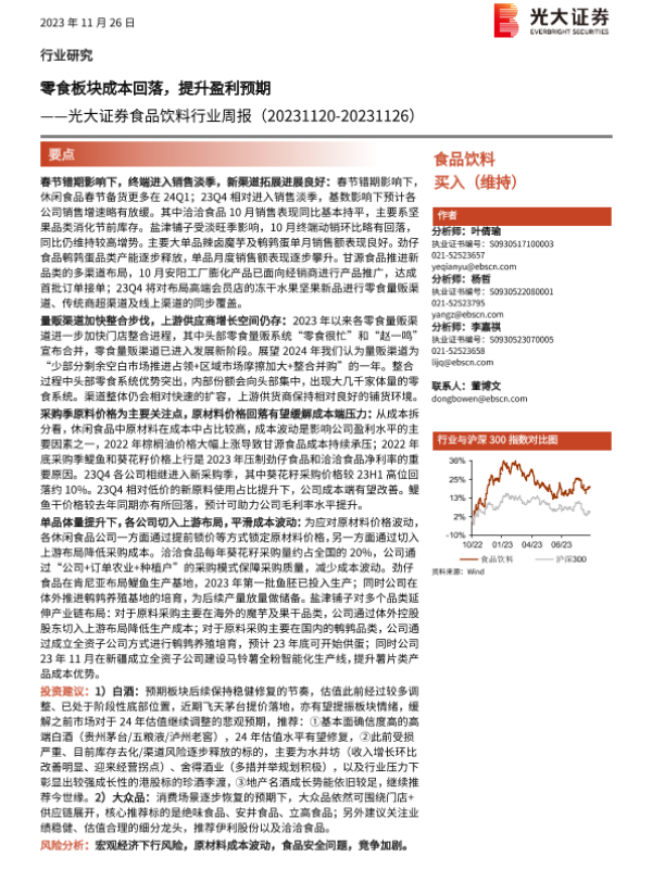 【光大证券】【20231126】食品饮料行业周报:零食板块成本回落,提升盈利预期-10页 行业研究