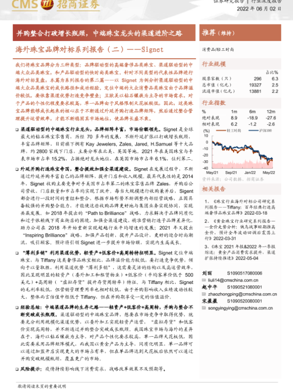 【海通证券】【20220602】轻工时尚行业海外珠宝品牌对标系列报告(二)——Signet:并购整合打破增长瓶颈,中端珠宝龙头的渠道进阶之路-23页 证券期货研究报告