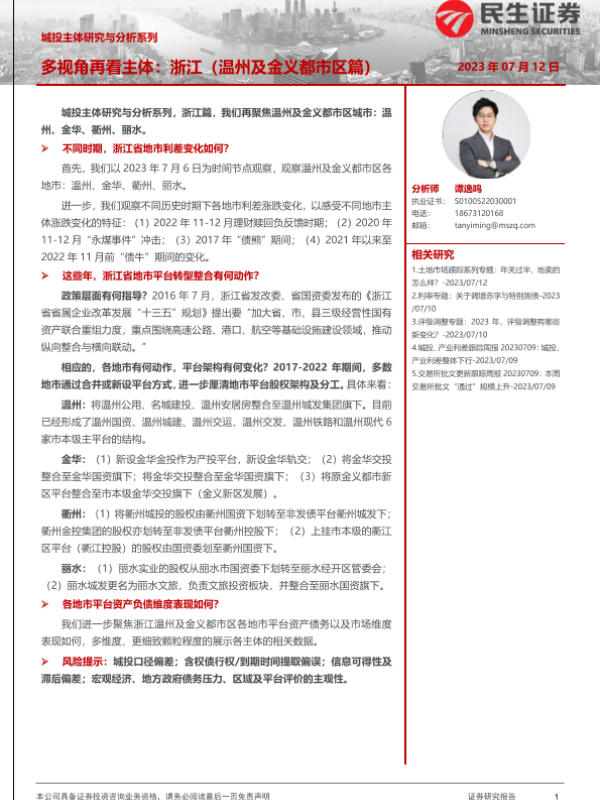 【民生证券】【20230712】城投主体研究与分析系列:多视角再看主体,浙江(温州及金义都市区篇)-28页 行业研究