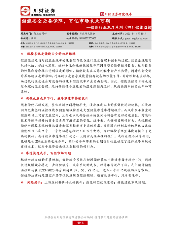 【川财证券】【20231130】储能安全必要保障,百亿市场未来可期-16页 行业研究