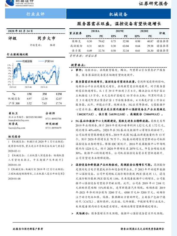 【财信证券】【20200224】机械设备:服务器需求旺盛,温控设备有望快速增长-2页 行业研究