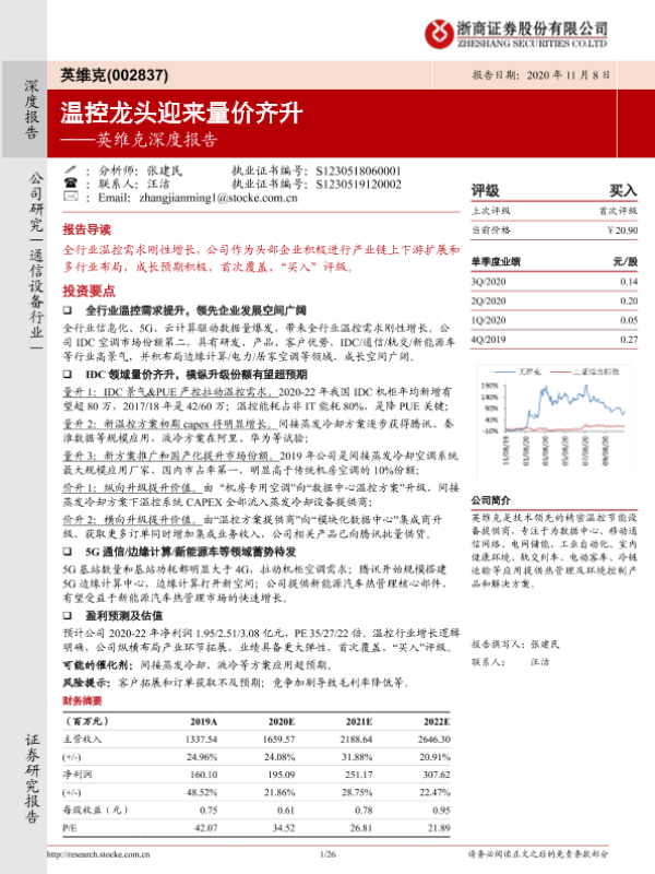 【浙商证券】【20201108】英维克深度报告:温控龙头迎来量价齐升-26页 行业研究