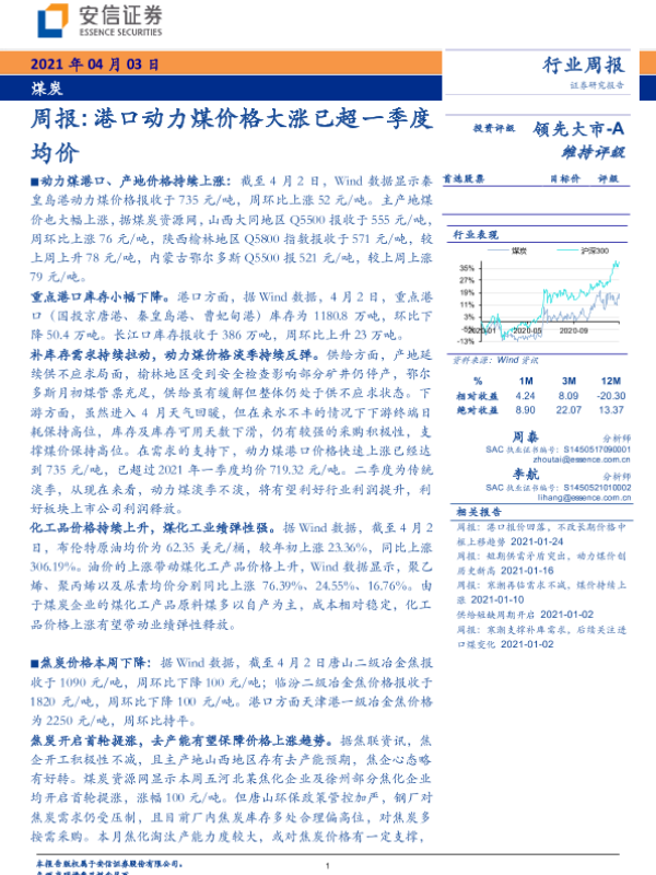 【安信证券】【20210403】20210403-安信证券-煤炭周报:港口动力煤价格大涨已超一季度均价-22页 行业研究