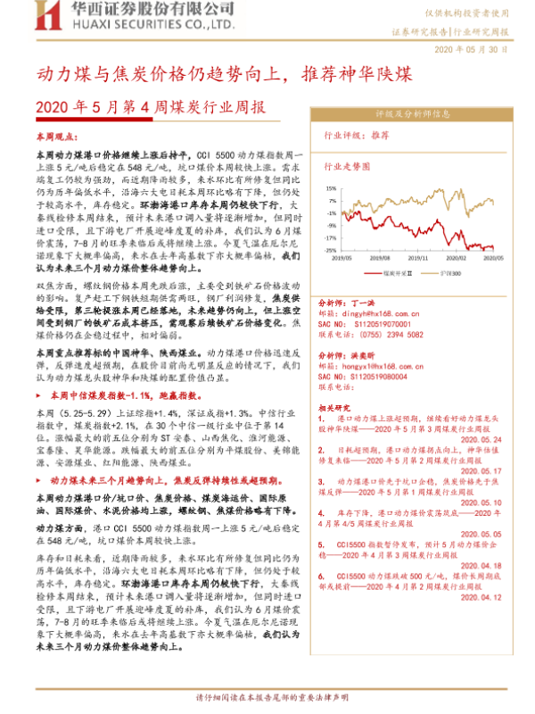 【华西证券】【20200530】2020年5月第4周煤炭行业周报:动力煤与焦炭价格仍趋势向上,推荐神华陕煤-21页 行业研究