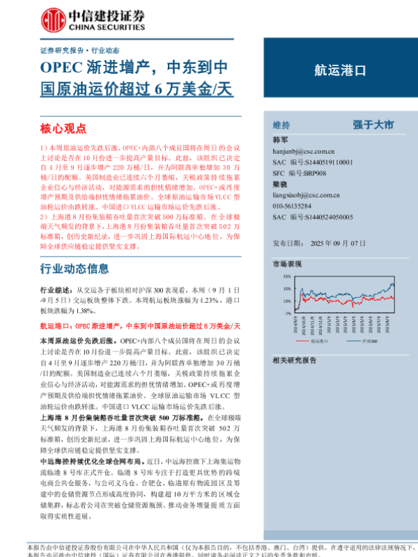 【中信建投证券】【202509】航运港口行业:OPEC渐进增产,中东到中国原油运价超过6万美金/天-21页 证券期货研究报告