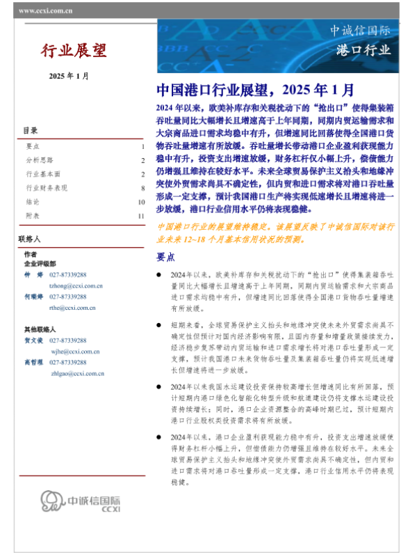 【中诚信国际】【202501】中国港口行业展望(2025年1月)-15页 行业研究