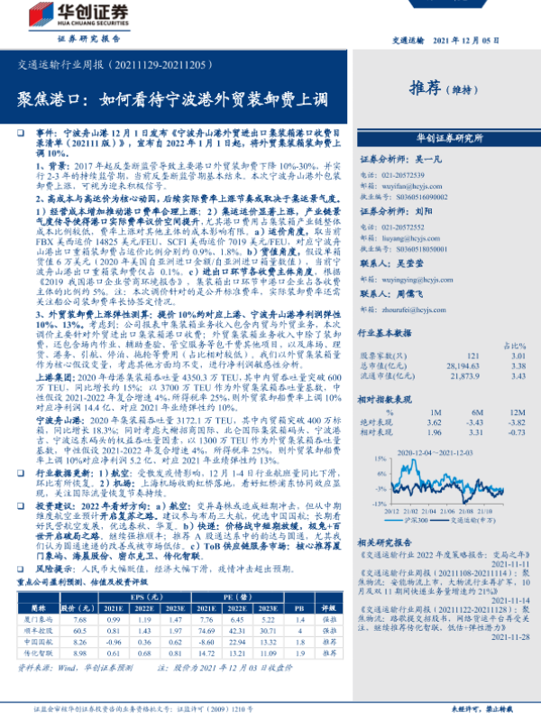 【华创证券】【20211205】交通运输行业周报:聚焦港口:如何看待宁波港外贸装卸费上调-19页 行业研究