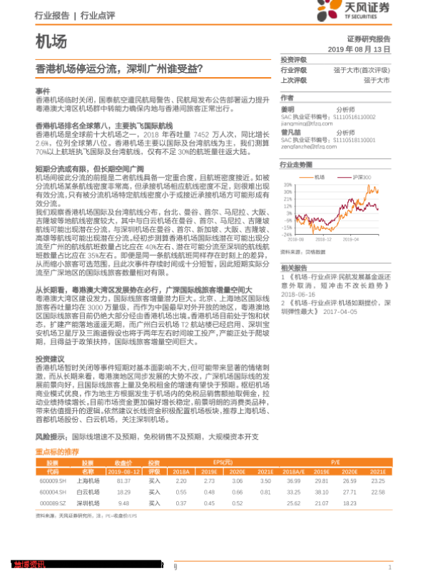 【天风证券】【20190813】香港机场停运分流,深圳广州谁受益?-2页 行业研究