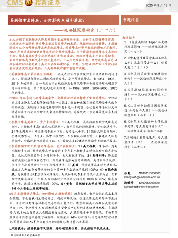 【海通证券】【202509】流动性深度研究(二十六):美联储重启降息,如何影响A股和港股?-11页 证券期货研究报告