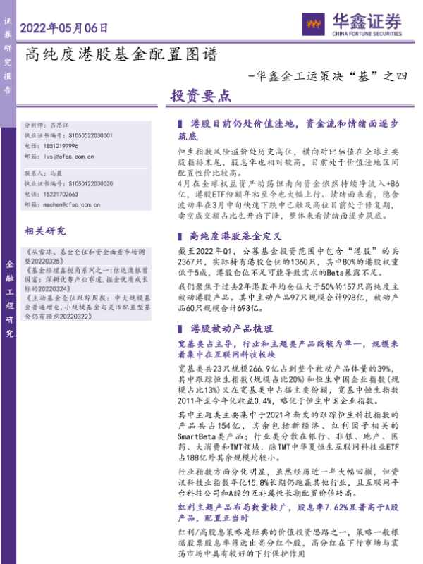 【华鑫证券】【20220506】金工运策决“基”之四:高纯度港股基金配置图谱-26页 行业研究
