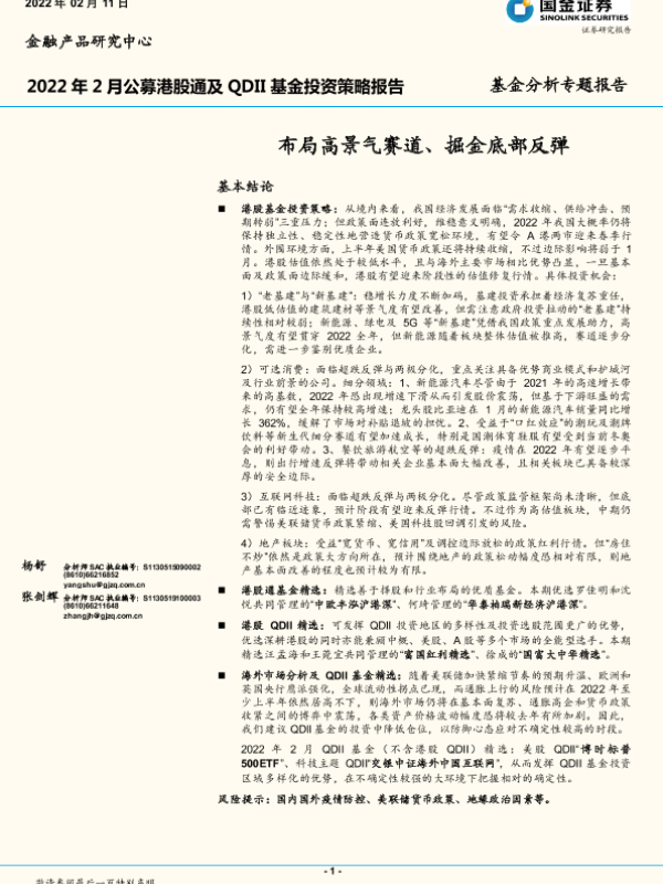 【国金证券】【20220211】2022年2月公募港股通及QDII基金投资策略报告:布局高景气赛道、掘金底部反弹-32页 行业研究