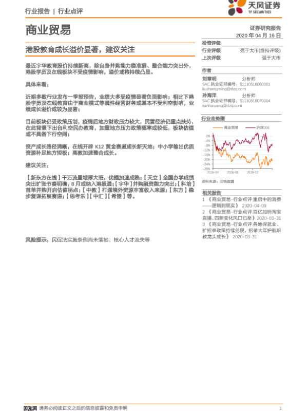 【天风证券】【20200416】港股教育成长溢价显著,建议关注-2页 行业研究