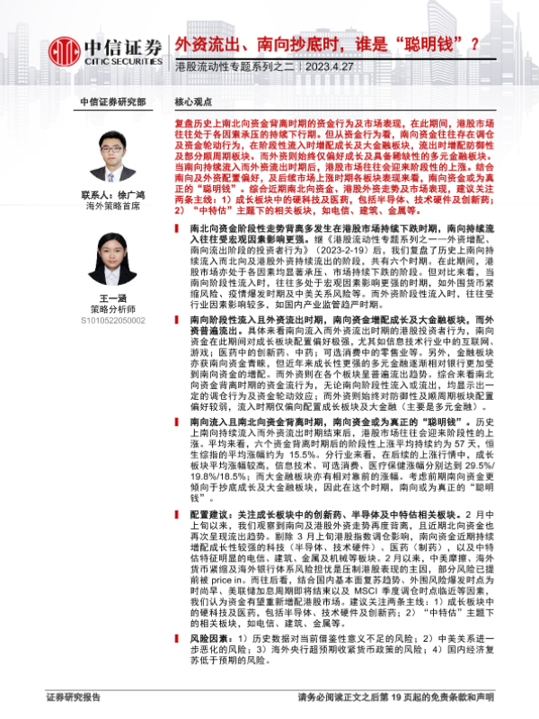 【中信证券】【20230427】港股流动性专题系列之二:外资流出、南向抄底时,谁是“聪明钱”?-20页 行业研究