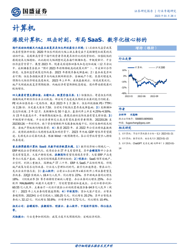 【国盛证券】【20230128】港股计算机:双击时刻,布局SaaS、数字化核心标的-15页 行业研究