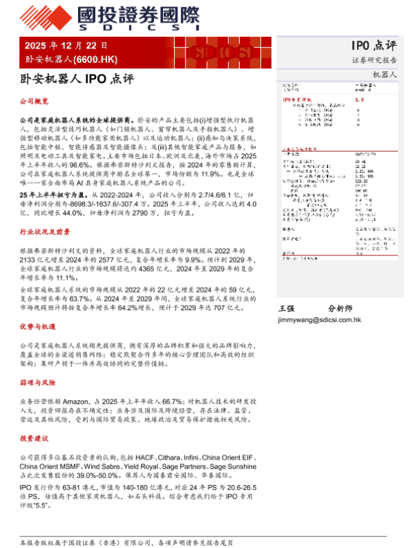 【国投证券(香港)有限公司】【202512】卧安机器人 IPO点评-2页 证券期货研究报告