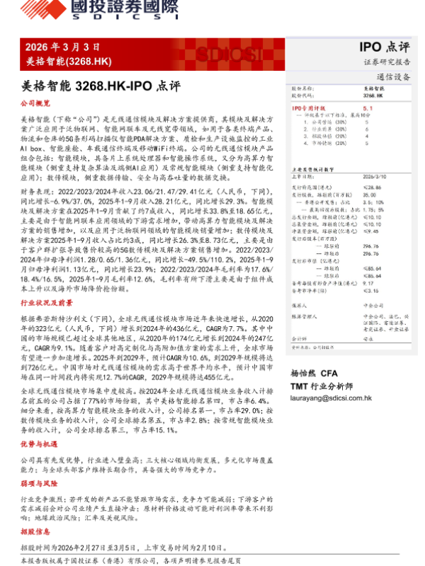 【国投证券(香港)有限公司】【202603】美格智能 3268.HK-IPO点评-3页 证券期货研究报告
