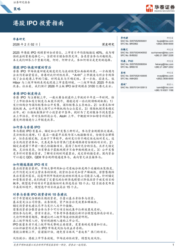 【华泰证券】【202602】港股 IPO投资指南-22页 指南