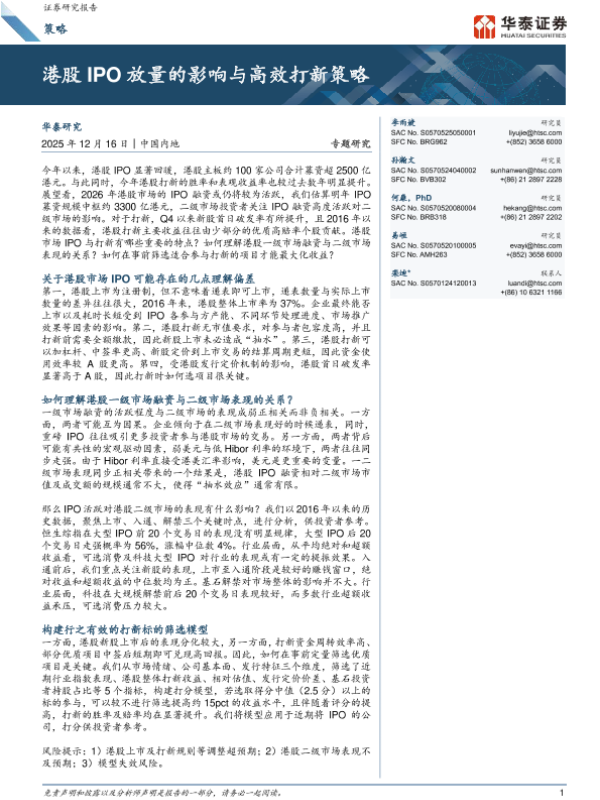 【华泰证券】【2025】港股 IPO放量的影响与高效打新策略-25页 证券期货研究报告