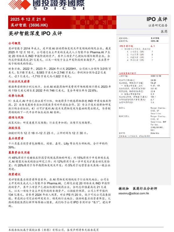 【国投证券(香港)有限公司】【202512】英矽智能深度 IPO点评-11页 证券期货研究报告