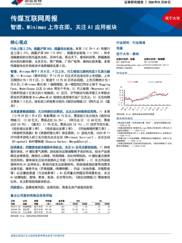 【国信证券】【202601】2026年01月08日_传媒互联网周报:智谱、Minimax上市在即,关注AI应用板块-13页 证券期货研究报告