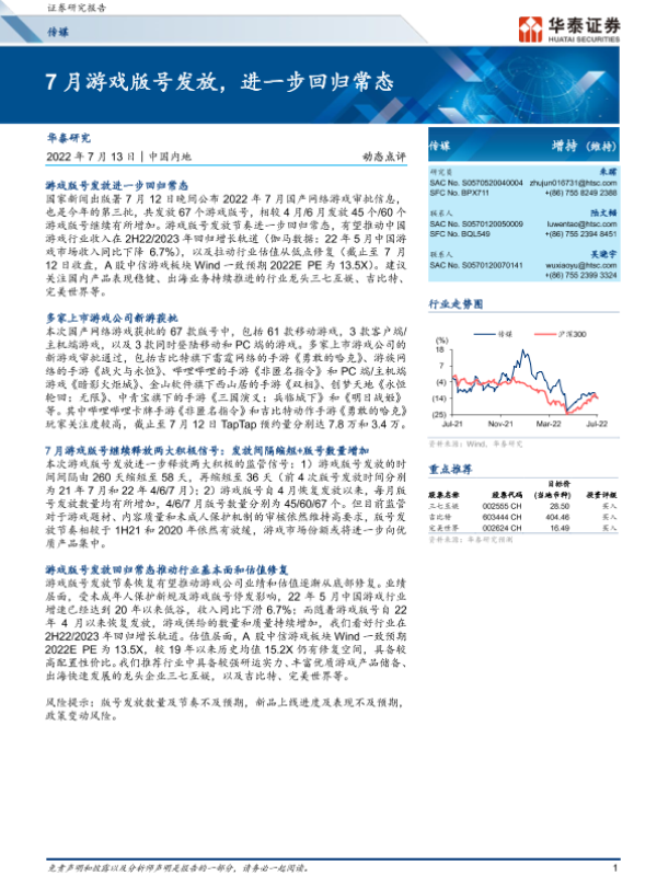 【华泰证券】【20220713】7月游戏版号发放,进一步回归常态-5页 行业研究