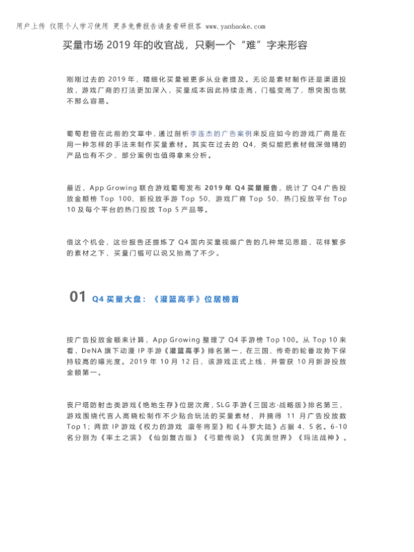 【App Growing联合游戏葡萄】【2019】2019年Q4手游市场买量报告-16页 市场调研