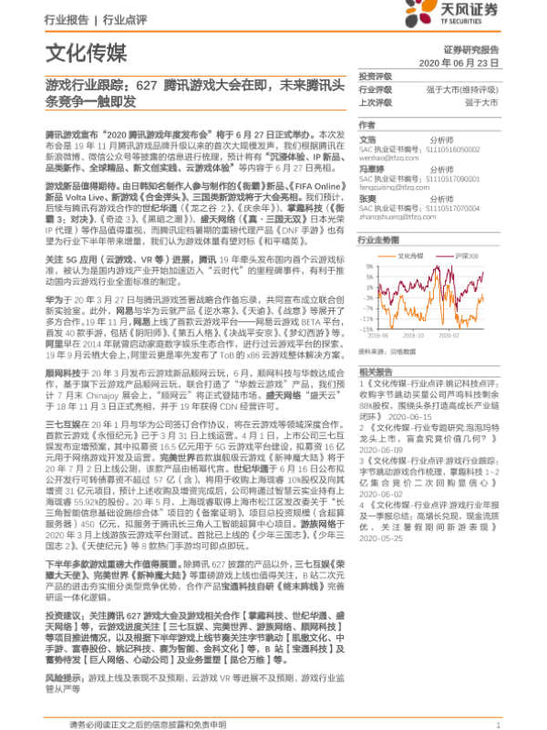 【天风证券】【20200623】627腾讯游戏大会在即,未来腾讯头条竞争一触即发-9页 行业研究