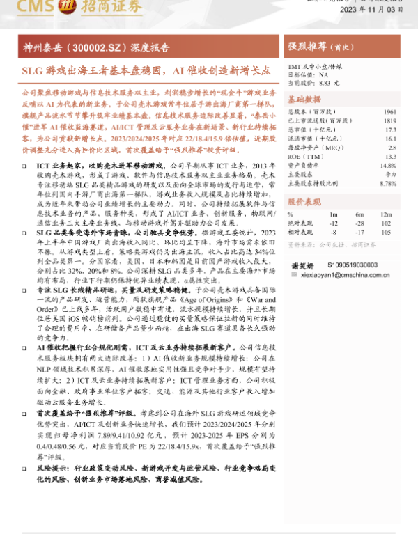 【海通证券】【20231103】20231103-招商证券-神州泰岳-300002.SZ-深度报告:SLG游戏出海王者基本盘稳固,AI催收创造新增长点-23页 行业研究