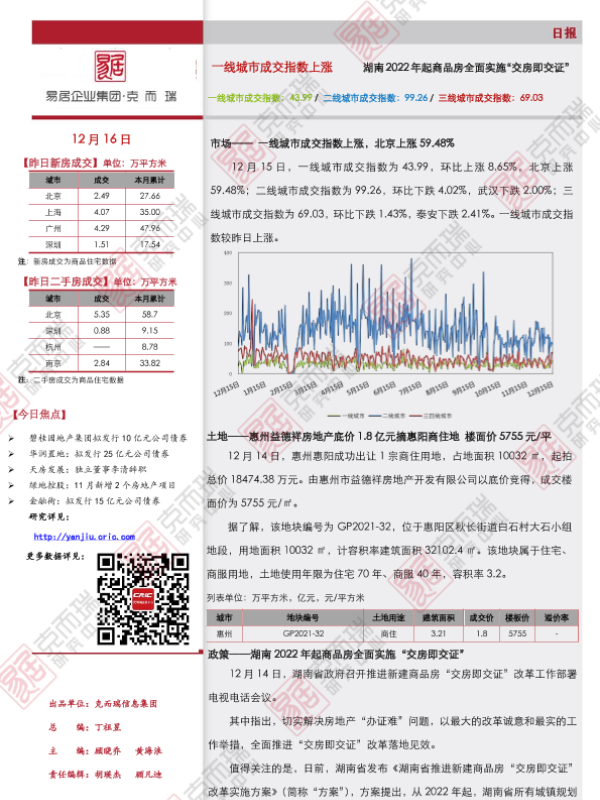【克而瑞研究中心】【20211216】市场日报(1216):湖南2022年起商品房全面实施“交房即交证”-5页 市场调研