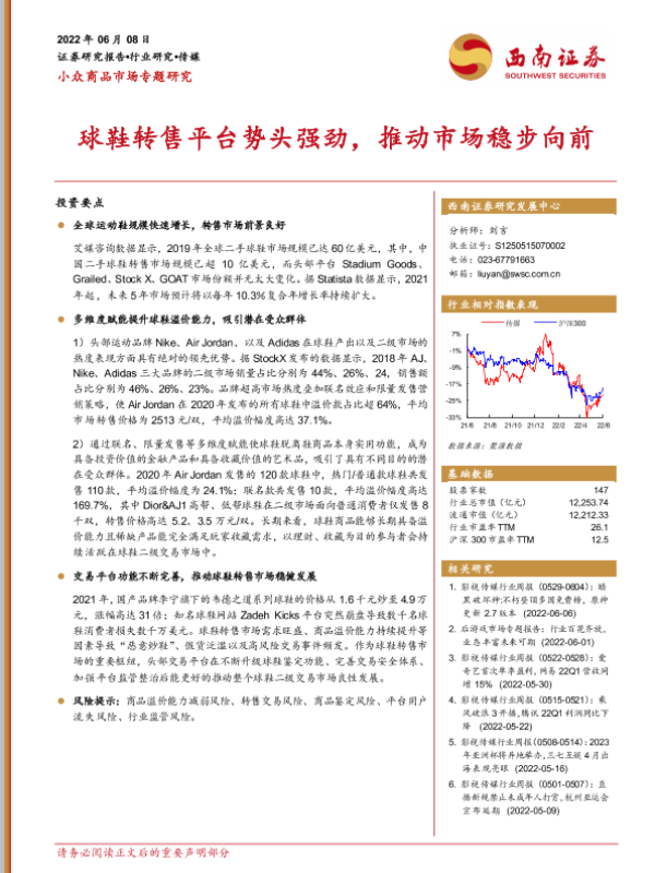 【西南证券】【20220608】传媒行业小众商品市场专题报告:球鞋转售平台势头强劲,推动市场稳步向前-22页 行业研究