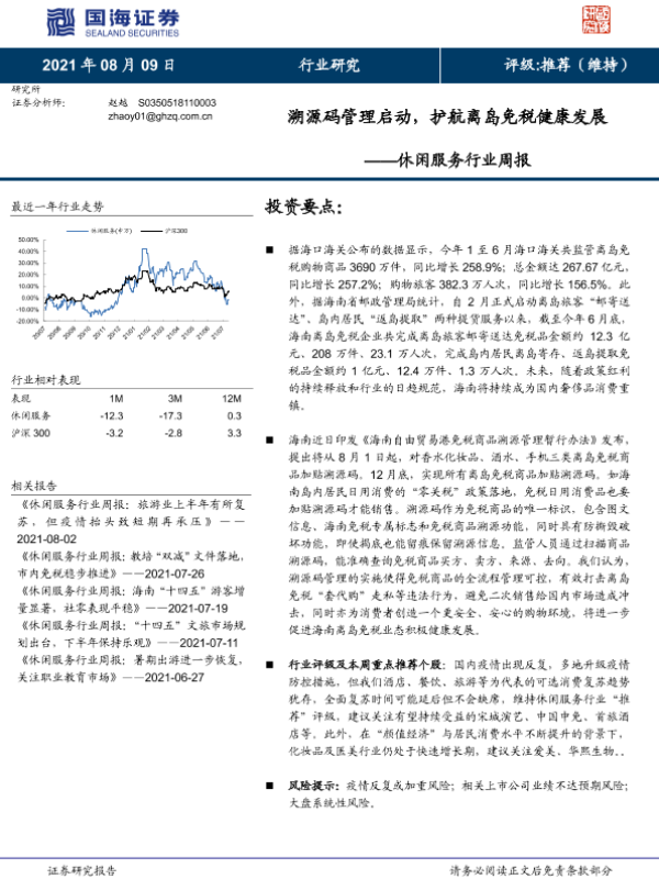 【国海证券】【20210809】溯源码管理启动,护航离岛免税健康发展-11页 行业研究