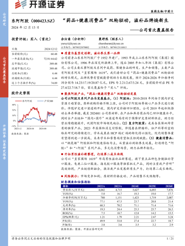 【开源证券】【20241213】公司首次覆盖报告:“药品+健康消费品”双轮驱动,滋补品牌焕新生-21页 公司研究