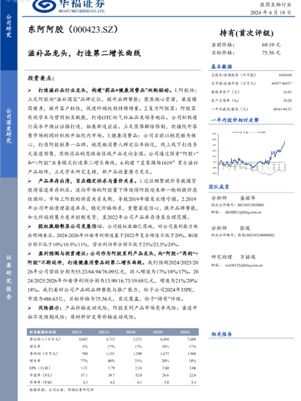 【华福证券】【20240419】东阿阿胶-000423.SZ-滋补品龙头,打造第二增长曲线-27页 行业研究