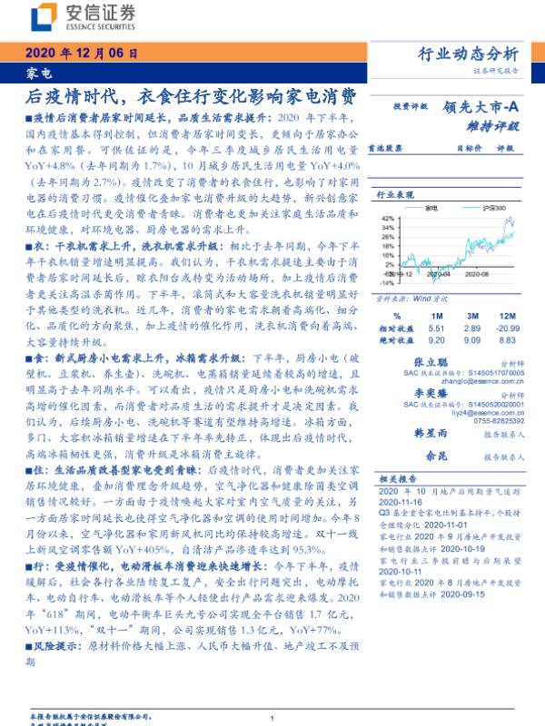 【安信证券】【20201206】20201206-安信证券-家电行业动态分析:后疫情时代,衣食住行变化影响家电消费-6页 行业研究