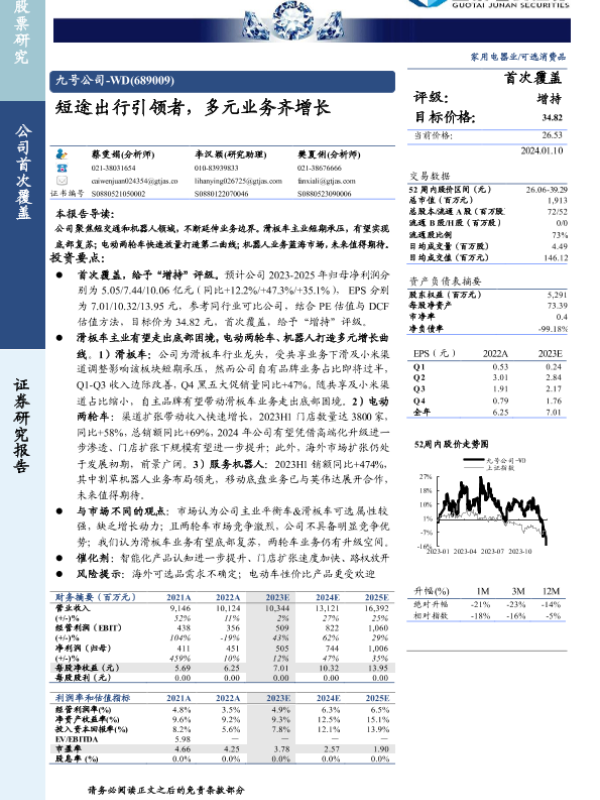 【国泰君安证券】【20240110】九号公司-WD(689009)短途出行引领者,多元业务齐增长-25页 行业研究
