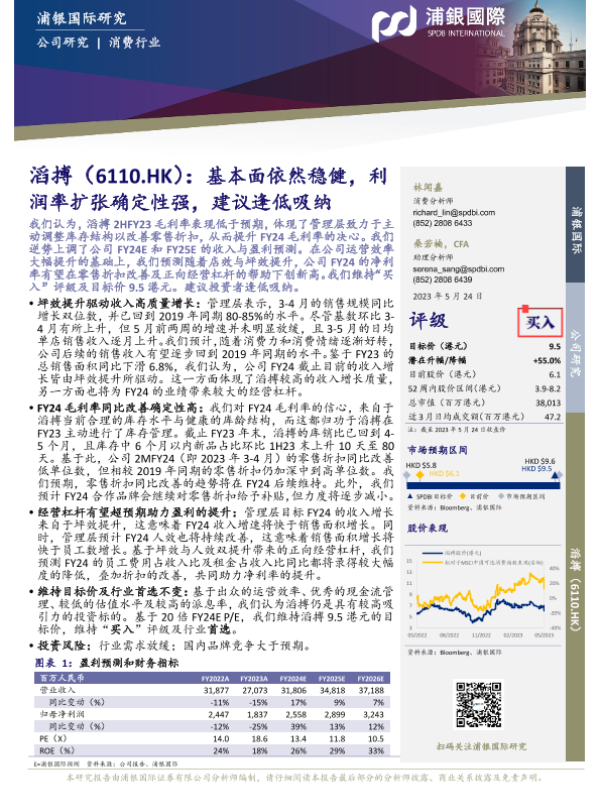 【浦银国际】【20230529】滔搏(6110.HK):基本面依然稳健,利润率扩张确定性强,建议逢低吸纳-8页 行业研究