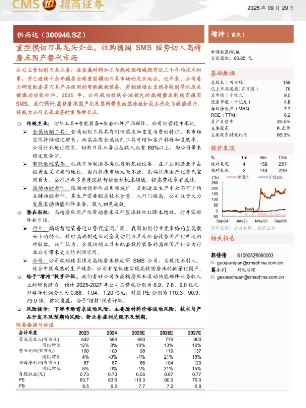 【海通证券】【202509】恒而达(300946)重型模切刀具龙头企业,收购德国SMS强势切入高精磨床国产替代市场-21页 证券期货研究报告
