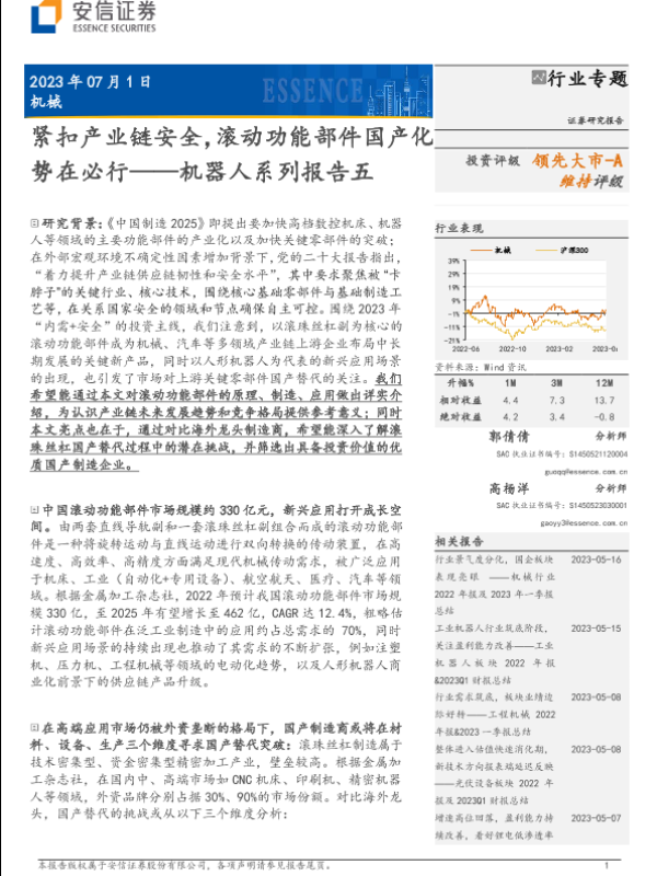 【安信证券】【20230701】机器人行业系列报告五:紧扣产业链安全,滚动功能部件国产化势在必行-56页 行业研究
