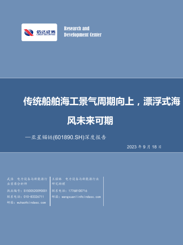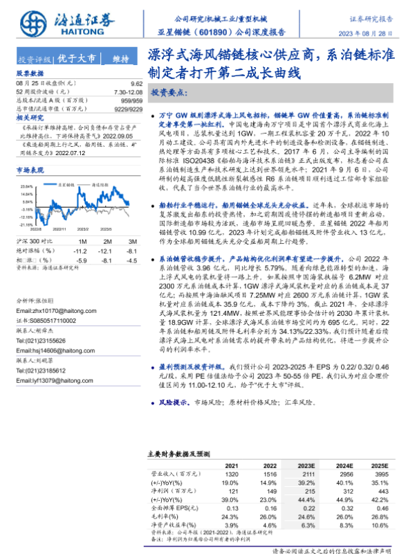 【海通证券】【20230828】20230828-海通证券-亚星锚链-601890.SH-公司深度报告:漂浮式海风锚链核心供应商,系泊链标准制定者打开第二成长曲线-25页 行业研究